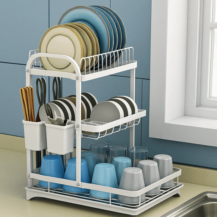 رف تخزين المطبخ – منظّم أطباق مدمج متعدد الطبقات لتجفيف الأطباق، الأوعية، والأدوات.
